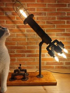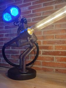 Me divierte también ir probando y experimentar con diferentes herramientas, técnicas y materiales, aunque suelo recurrir bastante a material de latón, cobre y madera. Además, la mayoría de mis “creaciones” suelen tener un componente eléctrico, pues me gusta pensar que además de su componente estético, también tienen cierta utilidad, iluminando un salón, estudio o rincón de pensar; y/o que tengan algún movimiento peculiar y llamativo. En definitiva, diría que se trata de diseños con bastante “chispa” y, eso sí, mucho cariño.